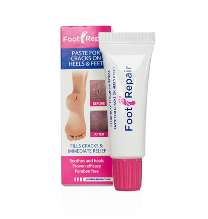 The unique paste formula is applied on dry skin cracks on feet and needs to be activated by water to adhere to the skin creating an invisible and long-lasting protective barrier. Once the problematic area is covered with our Feet Repair paste, seal it with your wet fingers and use a bandage (plaster) to cover it.